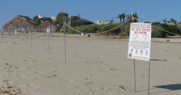 We were delighted to see that the parks people had erected the “symbolic fence” enclosure as promised, and the sand inside was strewn with seaweed wrack, supplying plenty of food for the little invertebrates which in turn are food for our beleaguered Snowy Plovers. We counted 25 of them, none banded.