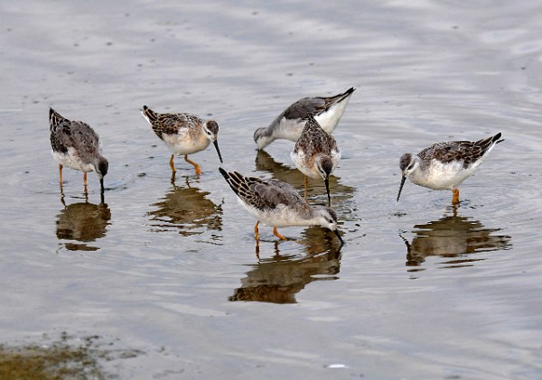 Afterwards, the lagoon looked pristine. The birds, especially this group of Wilson’s Phalaropes, were grateful. [Chuck Almdale]