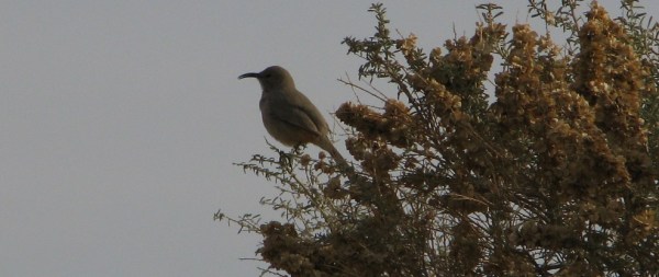 We returned to 50th St. E and went north to Ave K. We went east on Ave. K for about 1 mile and stopped at Little Rock Wash where we parked and walked south along the east side of the wash. We did not go down into the wash, preferring instead to remain above it where we could look down into it. We walked less than ¼ mi. and stopped where the wash curves east and looked down into the wash where we spotted a pair of Le Conte’s Thrashers that had been singing. After we all had scope views, we walked back to our cars. In addition to the thrashers, we saw: