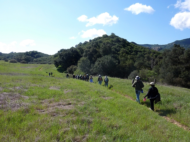 Everyone enjoyed the meandering Yearling Trail (and the lack of bicycles thereon) through the Reagan Ranch meadow. I read somewhere recently that Ronald Reagan (during his pre-President days) laid the trail out himself for hiking and horseback riding over to Malibu Creek. Nice choice, Ronnie! We salute you.