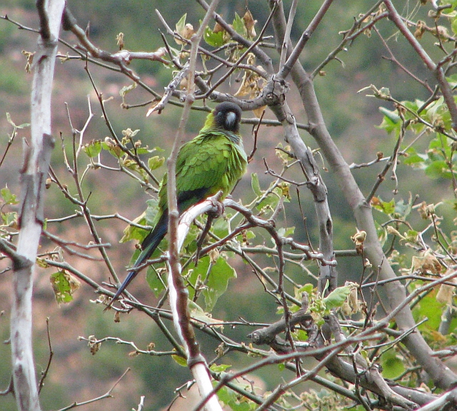 This species has spread throughout the canyons of the Santa Monica Mountains. A pair accompanied the pair of Mitered Parakeets. In the L.A. area – except for Macaws, Cockatiel and Budgerigar – if it’s a psittacid with a long pointed tail like a Mourning Dove, it’s a parakeet.