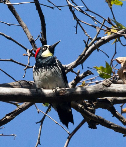 A shame we didn’t have more people out for this trip – the weather was perfect and the warblers were moving through. We started the day with a UFO (Unidentified Furry Object) that we suppose was a vole. [Later examination makes me think it is a pocket gopher. – Ed.] Down in the many many oak trees we found many many Acorn Woodpeckers, more Nuttall’s Woodpeckers heard than seen, and a few flickers.