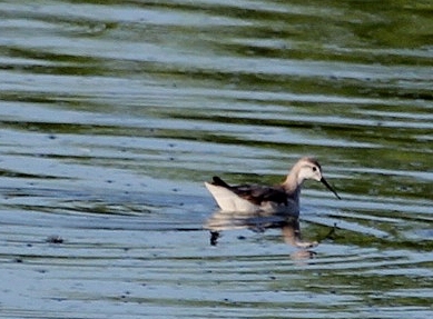 This first stop features a look at the most vegetated area of the River, where the willows and other plants have succeeded in blocking most of the view of the Harbor’s huge derricks only a couple miles downstream. The brushy habitat provides cover and food for bush birds, and sediment makes many pools and sandbanks for ducks and waders. Even though there were fewer ducks than last year, almost all expected species were there. Hundreds of Black-necked Stilts browsed in the shallows of the river. The treat was a number of Wilson’s Phalaropes, in and out of the water. As we moved back toward the cars, we got to compare the features of a Red-necked Phalarope – juvenile moulting into basic plumage (see slideshow photo) – and compare it to the Wilson’s.