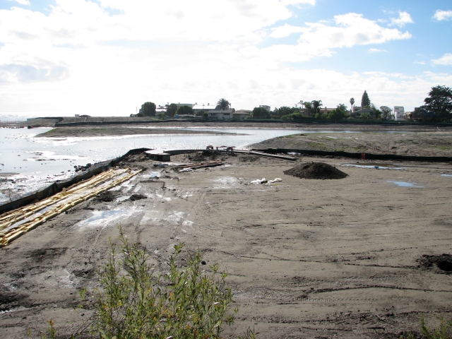 Despite such obstacles, we’ve tried to get a relatively accurate handle on the birds in the channel during the project period. The channel is now permanently open to the lagoon and the birds paddle in and out at will, so the population fluctuates constantly. Here’s what we found before 9am today. Most of the ducks were in one large flock on the channel’s north shore, still snoozing.