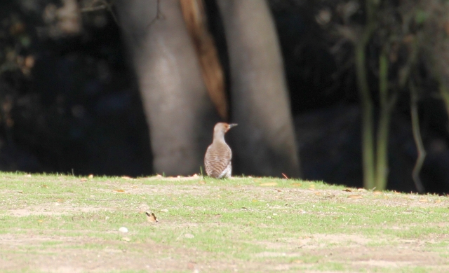 Typical to the area in spring are the Lark Sparrows, Dark-eyed Juncos, and Ruby-crowned Kinglets. One of the latter even flashed us with a “crown” display, while most of the Yellow-rumped Warblers remained in the gray winter plumage. A pleasant sighting occurred just after 11:30 when a pair of leaf-gleaning Hutton’s Vireos gave us pause in one of the live oak groves. Luckily one was repeatedly singing which allowed us to identify it. Two expected species did not appear: Bewick’s Wren and Spotted Towhee – even to the diminished group that hiked out to the overlook portion of the nature trail. We were lucky in our timing, the warm breezes started about 11am and it became quite hot in the afternoon. [Lucien Plauzoles]