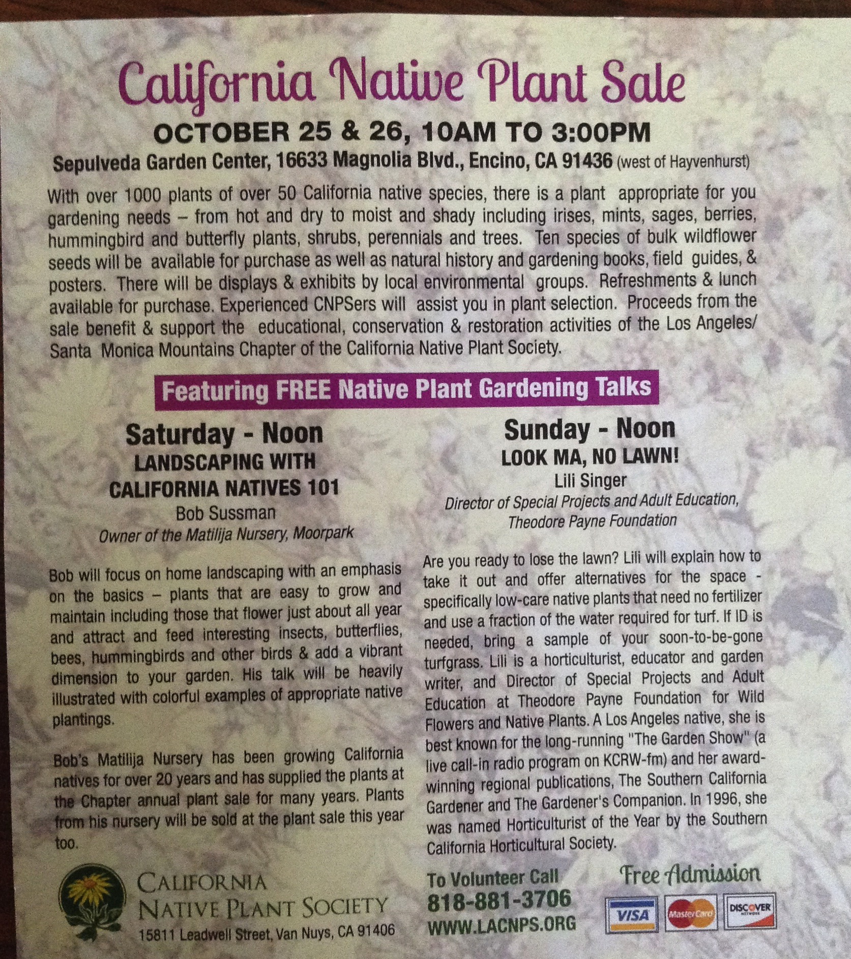 What a better way to get a quick education in the ways and means of California natives than to go to the Native Plant Society’s annual fall sale. Yes, October is the best planting month for these new friends.