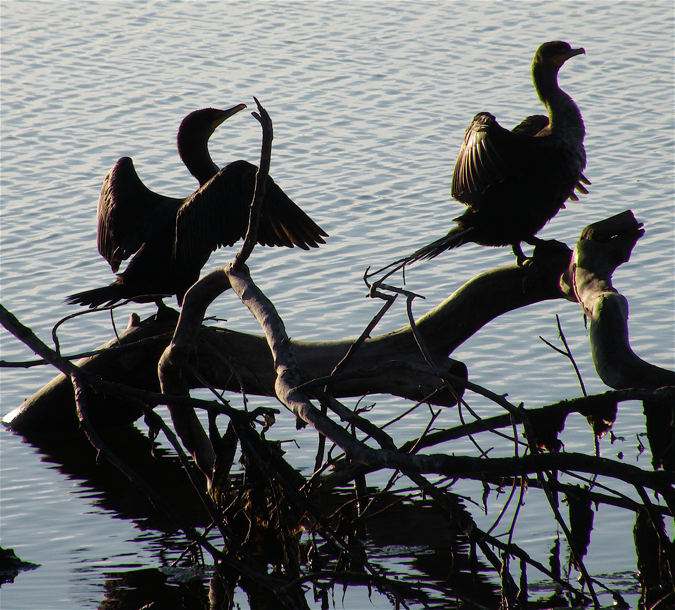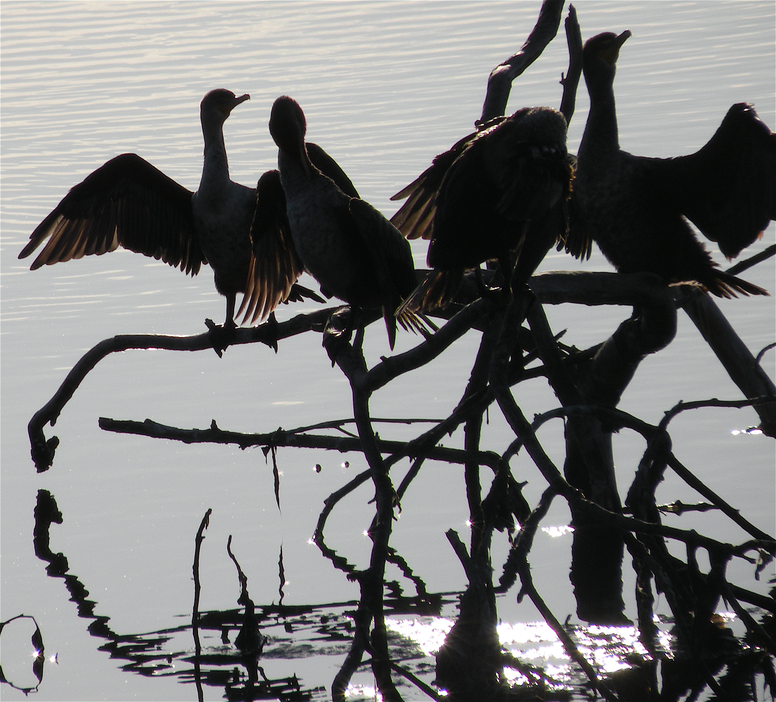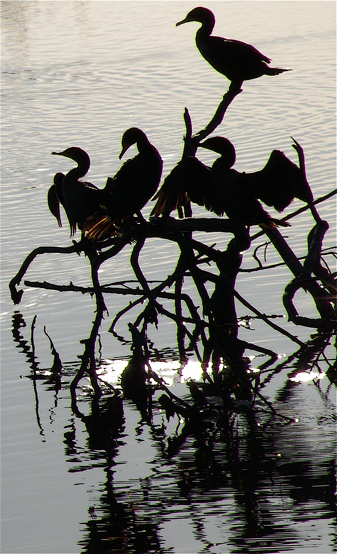 CsinTrees  At Malibu Lagoon, Double Crested Cormorants are hard to miss, perched on tree snags in the lagoon waters or along the lagoon shore.