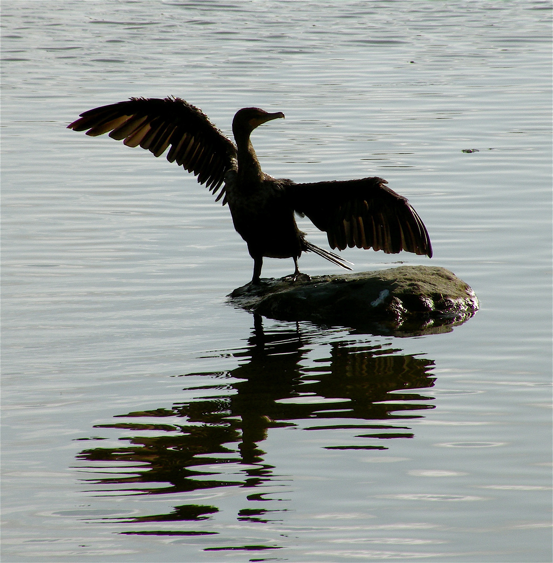 Along with its unlucky dark compatriots, the bat, the raven and the black cat, the cormorant’s deep midnight coloring brings fearful associations to the minds of many. True, those many in the case of cormorants are often coastal commercial fishermen, aquaculturists and sports fishing business owners, but dark coloring is all too often still associated with the uncertain safety of night on subconscious levels, with roots going far back in human history. The Bible and Shakespeare associate cormorants with bad luck, evil or gluttony, and Milton has the devil himself appear as a cormorant.