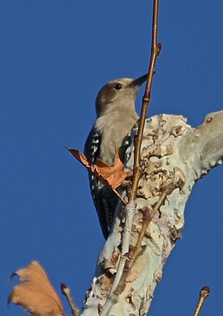 Sunday morning began with a drive through the tree-filled SW Brawley residential neighborhood, which yielded our first pair of Gila (Hee-laa) Woodpeckers. Cattle Call Park had more, plus Cedar Waxwings and other small birds. No Zone-tailed Hawks appeared. We checked out another new area, known locally as Carter & Fites, a small undeveloped brushy forest, mostly mesquite, where Crissal Thrashers could be found. Alas, none were. And not much else, either, except a few Phainopeplas, a Blue-gray Gnatcatcher, some Verdin, and a honeybee who was obsessed with my hearing aids.