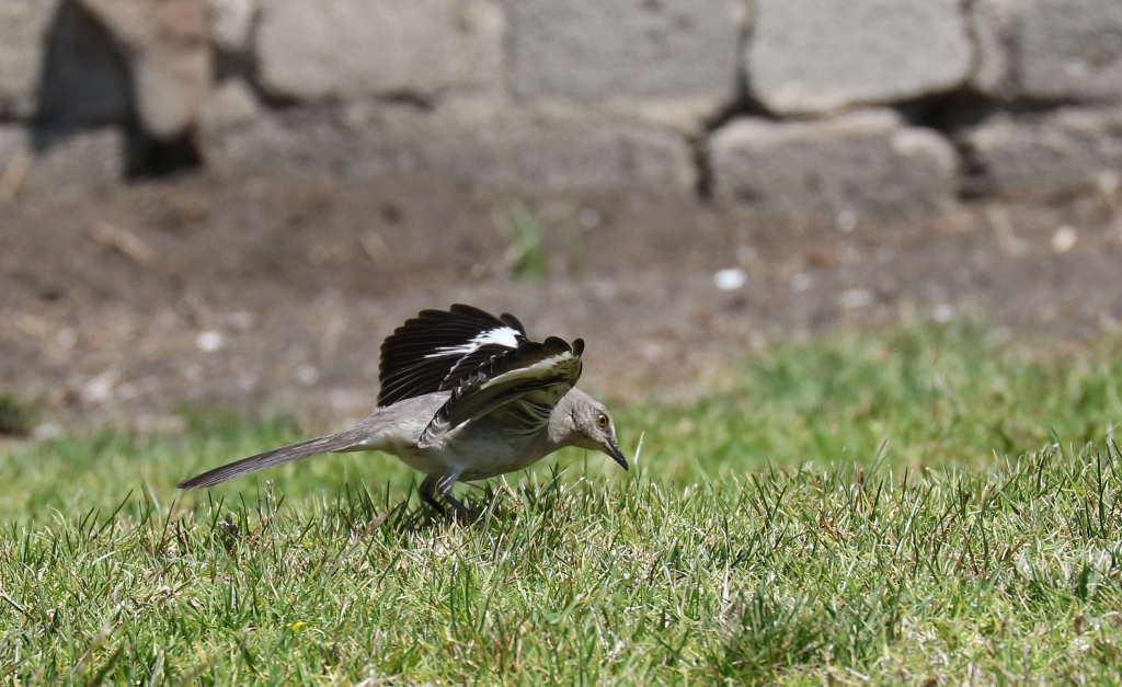 On the lawn at Adamson House we found a foraging Northern Mockingbird. Not an uncommon sight, in itself. But it was frequently flicking its wings as it walked along the