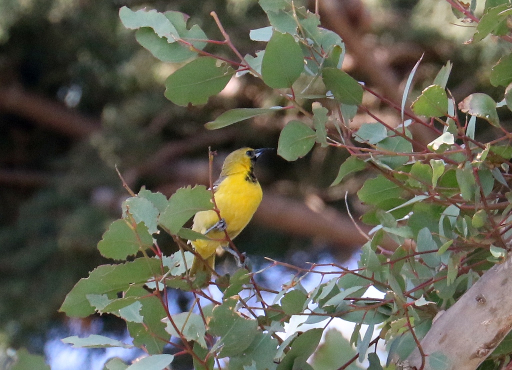 There were even orioles: at least three Hooded Orioles – two females and one yellow-not orange year-old male – were in the trees near the Colony wall. Hooded Orioles – the ‘hood’
