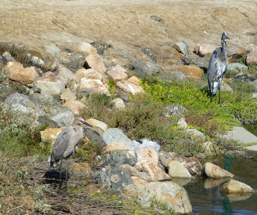 Bolsa Chica** is an Ecological Reserve in Orange County, separated from the beach by Pacific Coast Highway. Our first exciting bird (not that the kamikaze diving pelicans and terns were not exciting) was a Ridgway’s Rail which emerged from under the bridge,