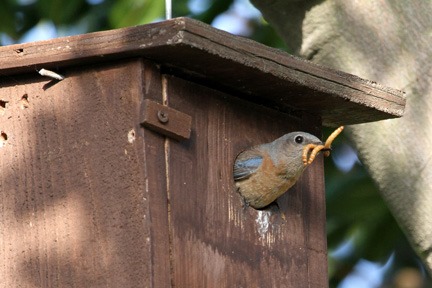 If they build their own nest box, they have to know that the entrance hole for Western Bluebird should be 1 9/16″, NOT 1 1/2″ as for Eastern Bluebird. I heard years ago from a good authority that the hole is slightly different for Western Bluebird.