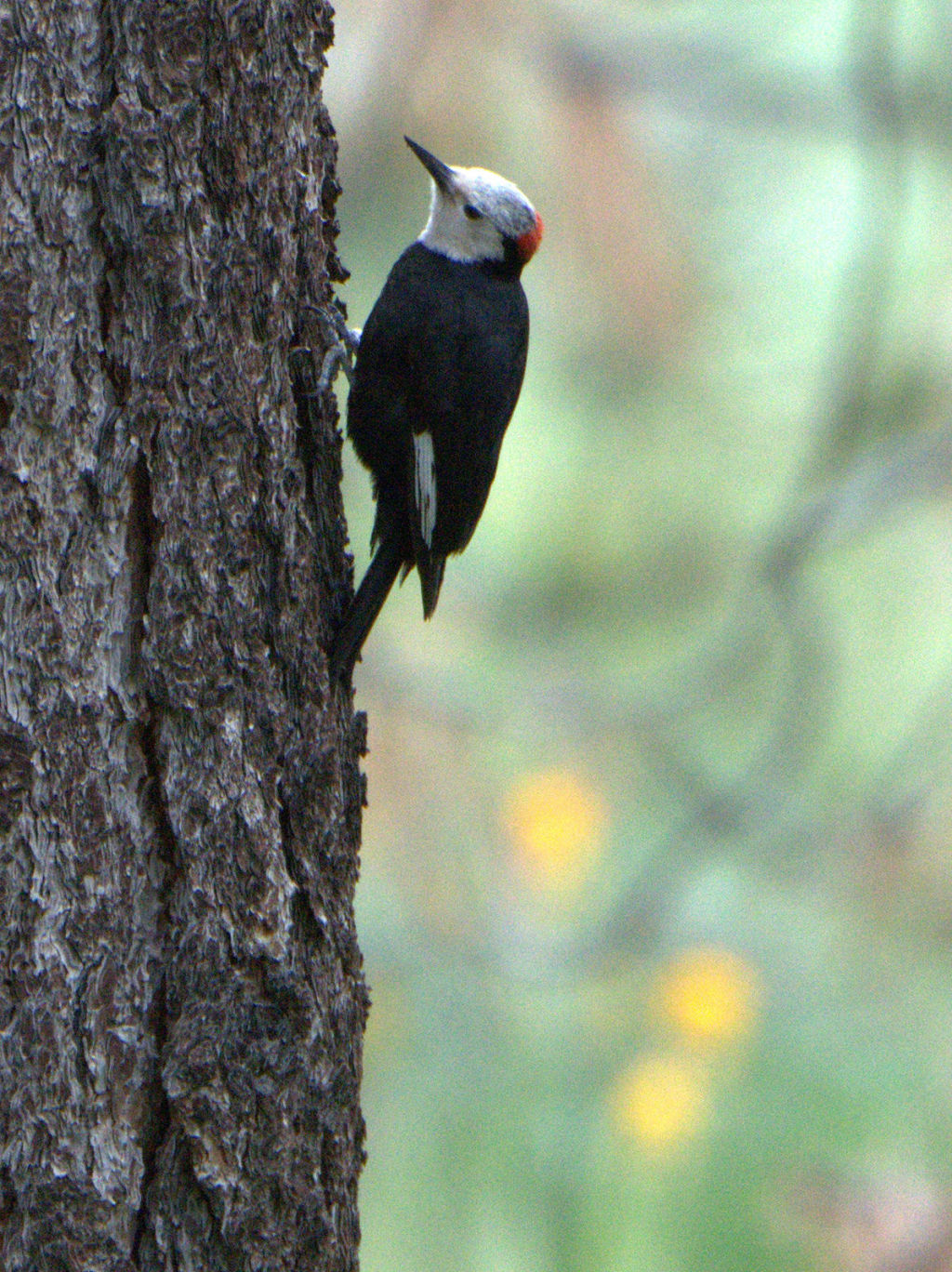 Male White-headed Woodpecker likes high altitudes (Read Howarth 6-11-16)
