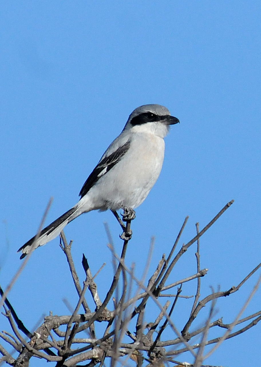 Loggerhead Shrike sits-and-waits on his bare twig perch. Malibu Creek State Park (Jim Kenney 11-20-12)
