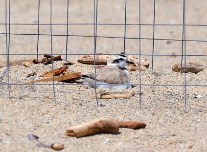 I’ll be short and not-so-sweet. We witnessed the first nesting of Western Snowy Plovers on Los Angeles County Beaches since 1948 in the past three weeks. The first nest was overcome by sand in a vicious three-day windstorm in late April. The eggs of another disappeared at Malibu Lagoon, even though a mini-exclosure had been placed around them. The first nest at Dockweiler State Beach resulted in three chicks–but they were eaten by a Ring-billed Gull when not quite four days old.