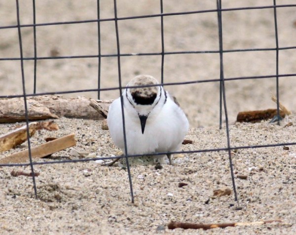 Snowy Plover on remaining unhatched egg, Malibu (Sarah Ngo 6-3-17)