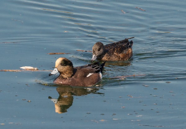 Alas! It was not to be. Not many ducks, and American Wigeons were most of them. A pair of Hooded Merganser at the first stop was nice. After lengthy searching by all, Ken found a lone Sora hiding in the pickleweed at bay’s edge. We also heard a Virginia Rail hiding in a dense bed of reeds.