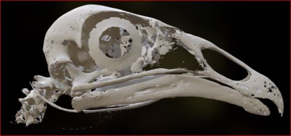 These can be rotated to any angle (not just 360°) and zoomed in. The view below is downward from above the vulture’s left eye socket. You can download these skulls onto your 3-D printer (What! You don’t have one? Maybe your local school does.) to create your very own plastic skull replica.