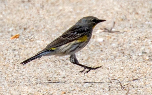 Several days after our original publication on 1 April, 2018, we received notification of another sighting of Ehler’s Sandhopper-Warbler. This sighting was on 1 April, 2018, but several hundred miles farther north and quite likely was a different bird. Well-known international birder, Don Roberson, was out doing some morning birding at a local patch, – the Iris Canyon vicinity of the Monterey MPC campus in Monterey, CA, to be exact – when he spotted and photographed what he naturally assumed at the time to be a typical Yellow-rumped Warbler, well on its way into alternate (breeding) plumage. Alerted by our announcement of the presence of the Ehler’s Sandhopper-Warbler in Southern California, he reexamined his photograph, and discovered it to be the Ehler’s. This second sighting supports Dr. Ehler’s conjecture (see below) that the birds may have been wintering in North America for a very long time, their presence unsuspected until now, due to their exceptionally close resemblance to the unrelated and very common Yellow-rumped Warblers.