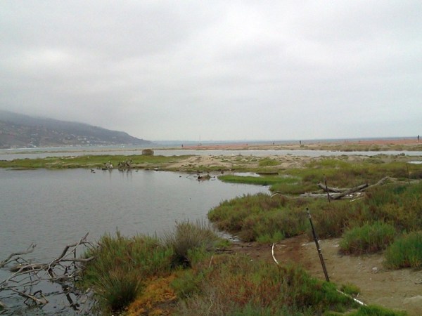 South edge of Malibu Lagoon, Santa Monica disappearing into the far foggy distance (L. Johnson 6-24-18)