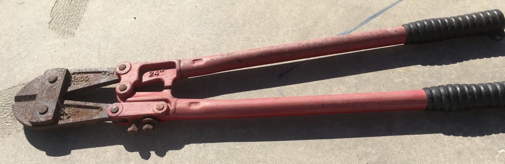 - Bolt cutters about 10 lbs. and 24″ long