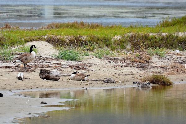 Canada Geese, adults and goslings, at lagoon’s edge (G. Murayama 6-21-19)