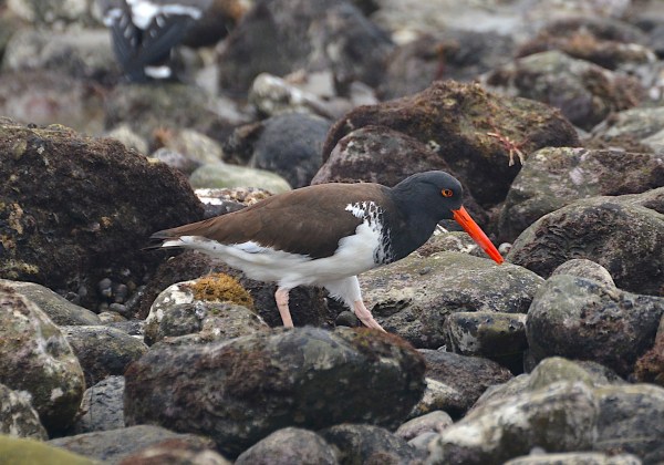 This American Oystercatcher, or perhaps more than one, has been a regular visitor on Malibu rocks at low tide for the past few months. (G. Murayama 1-20-20 Malibu Lagoon)
