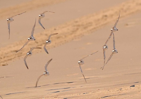Western Snowy Plovers in flight (L. Loeher 2-14-20 Malibu Lagoon)