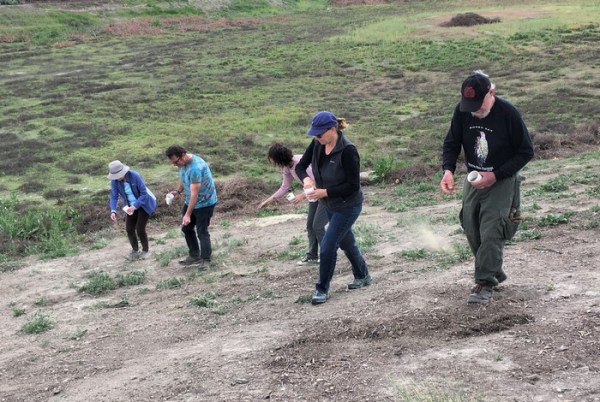 In February, we waited anxiously for rain so the native plant seeds could be sowed. Finally, in early March, when some substantial rain was forecast, the seeds were spread and lightly worked into the ground.