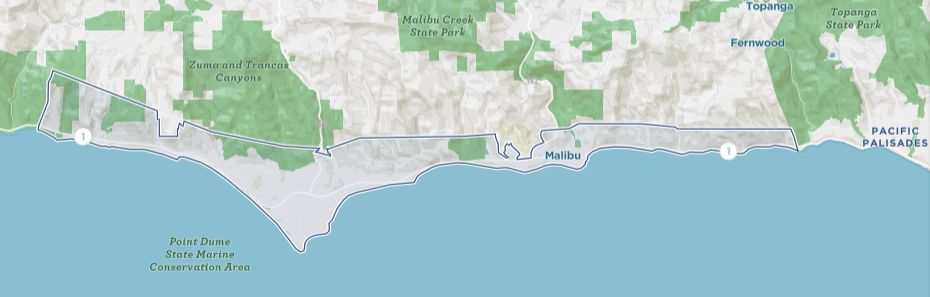 - Western end: Eastern edge of Leo Carillo State Park, just east of Mullholland Blvd.