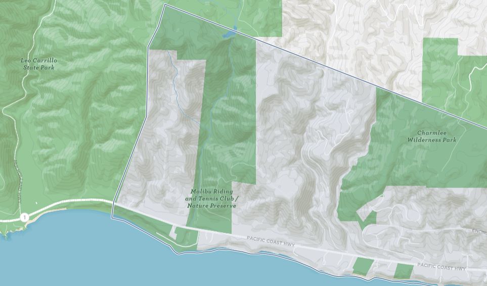 Blue (Malibu residential) and green (State Parks) areas are the local drone no-fly zone. hivemapper.com