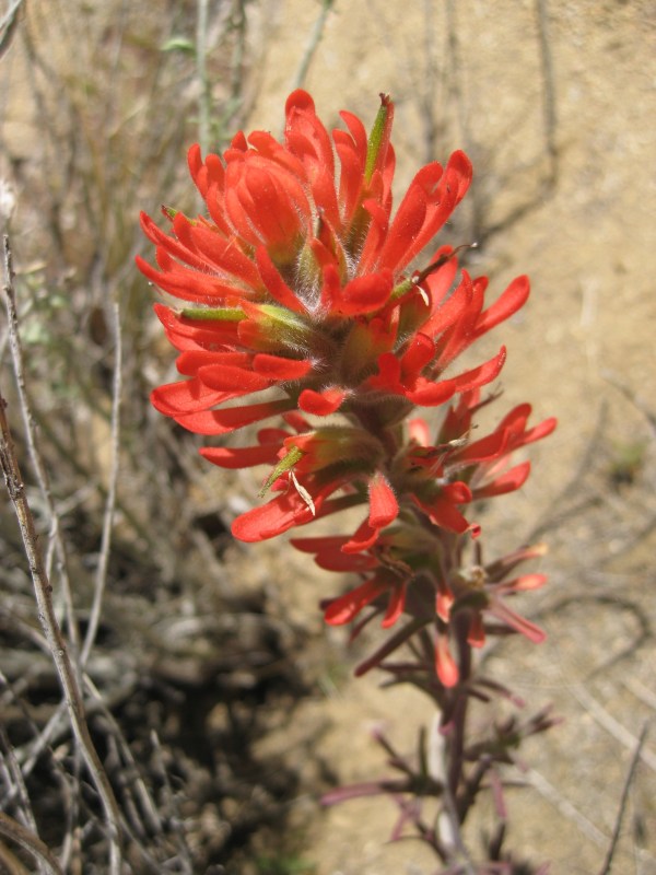 8:15 a.m. is a little late to catch all the migrants, but we immediately found many species of birds. A beautiful male and female Black-throated Grey Warbler, Lesser Goldfinches, Chipping Sparrows, Dark-eyed Juncos, Wilson’s Warblers dripping off willow branches, male and female Black-headed Grosbeaks, Yellow-rumped Warblers in eye-popping breeding plumage and White-crowned Sparrows to list a few. Mourning Doves and House Finches were numerous. California Towhees, Bewick’s Wrens, House Wrens and Rock Wrens were all singing. Long-eared Owls and Roadrunners were absent, but maybe next year! Floral bonuses included: deep pink Beavertail Cactus on the slopes, many yellows, especially brilliant Biglow’s Coreopsis, Golden Bush, and other yellow composites. Purple Chia was also common, and deep blue, fragrant Bush Lupine warranted numerous pictures.