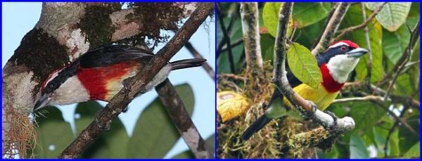 Right: Scarlet-banded Barbet – C. wallacei (Andrew Spencer – Macaulay Library eBird)