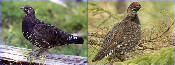 Right: Spruce Grouse – F. canadensis (Luke Seitz – Macaulay Library)