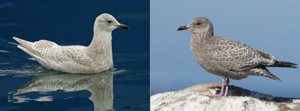 Left: 1st year Iceland Gull – Larus glaucoides (Luke Seitz -Macaulay Library)
