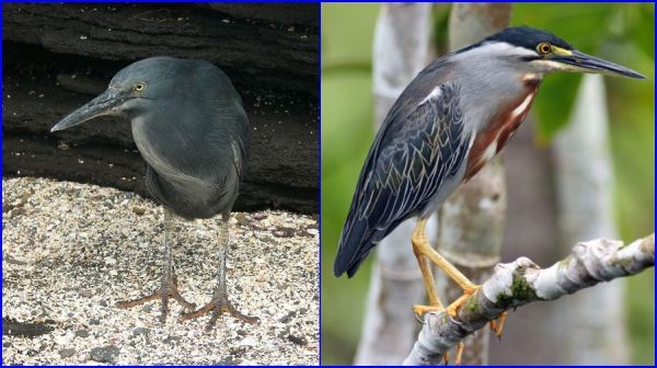Left: Lava Heron – Butorides sundevalli (Victor W. Fazio III – Flickriver)