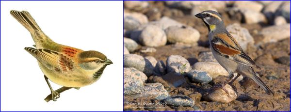 Left: Afghan Sparrow – Passer yatii John Gerrard Keulemans