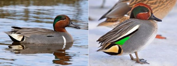 Left: Green-winged Teal – Anas carolinensis (Jeff Stacey – Macaulay Library)
