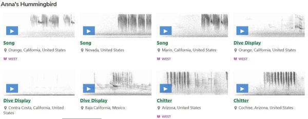 Another option was to Explore the Companion Sound Library. Enter a bird name and up comes a page of sonograms. Poke a tab and hear what you’re looking at. You can do this on your smartyphone.