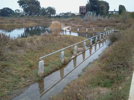 An inundated tidal clock sidewalk measured 6′ 9.6″ lagoon water