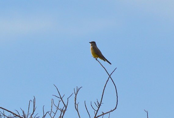 While this distant Cassin’s Kingbird (distinct white chin) waited for a flying fly to fly by.