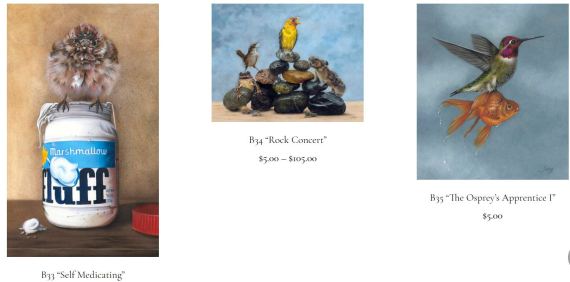 This is not an advertisement. Neither SMBAS nor myself nor anyone I know is getting any commissions from this. I like Sorg’s artwork for it’s combination of attention to detail, humor, fantasy, composition, skill, and her inclusion of real, identifiable birds. I think many others will like it as well. There’s quite a selection on her website https://twodogstudio.com/. Her work is sold as either cards or large prints.