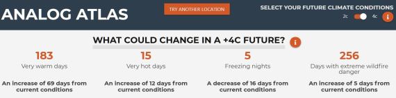 It’s extremely user-friendly. It will give you two locales comparable to your current locale; one if the average temperature goes up 2°C, the other for 4°C.