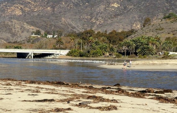 Channel, sand cliff, birds, lagoon, PCH bridge, Serra Retreat Center, Santa Monica Mountains (F. Faminu 12-26-21)