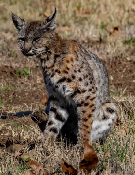 Last but far from least was an excellent sighting of a Bobcat at King Gillette. We’ve seen them before in various parks in this part of the Santa Monica Mountains, but they always beat a hasty retreat, vanishing over the hill or into the brush. This Bobcat was sitting in the sun on the ground squirrel-festooned lawn at King Gillette, near the brush at the northern border of the property, quite close to one of Santa’s Little Helper-houses, and did not look at all like it was thinking about moving just because a few pesky humans had come along. We all looked at each other for a few minutes, then it roused itself and stretched-staggered-slunk into the brush, not far from the California Quail who had been enjoying the sun not far away. The Bobcat’s tail was short and curly.