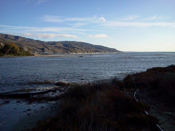 It hit 34°F passing by Malibu Creek State Park in the Santa Monica Mountains enroute to the lagoon, our low for the day, but at the beach a few miles away it was a roasty toasty 50°.