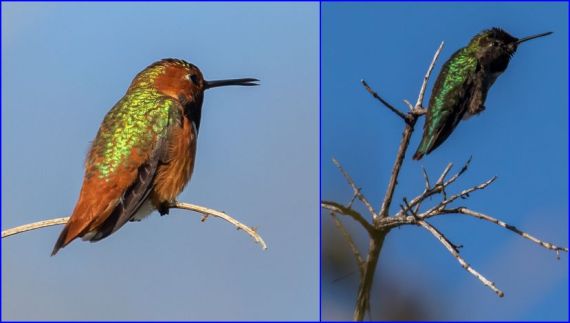 In profile the bright structural colors of their gorgets don’t show