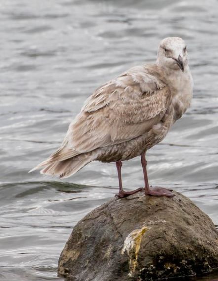 Following that, we had two counts of eight birds, one count of seven, six counts of six, and seven counts of 5 birds, including Jan & Feb of 2022. With 131 census days on which at least one Glaucous-winged Gull was sighted, that leaves 113 sightings of 1 to 4 birds. The resulting average is 2.6 birds/sighting. That’s a good definition for “regular in small numbers.” December through May are the best months for seeing them at the lagoon. We’ve never seen one in September and only one in August.