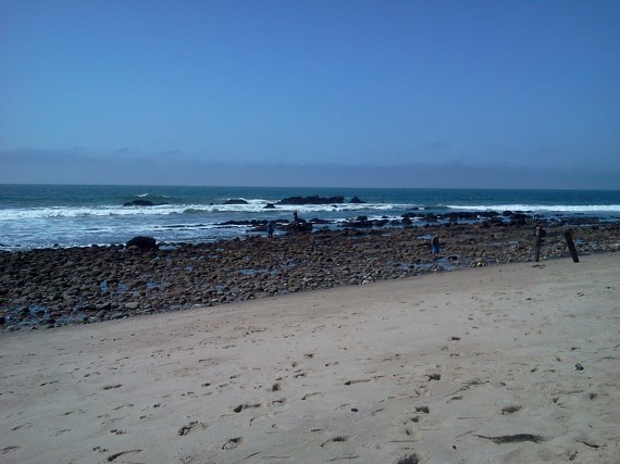 The fog kept the temperature comfortable. Big ones were rolling in at the beach, and the waves were covered with surfers. Outsiders kept appearing, and the surfers were too close in to catch them, always a disappointment for surfers and watchers alike.